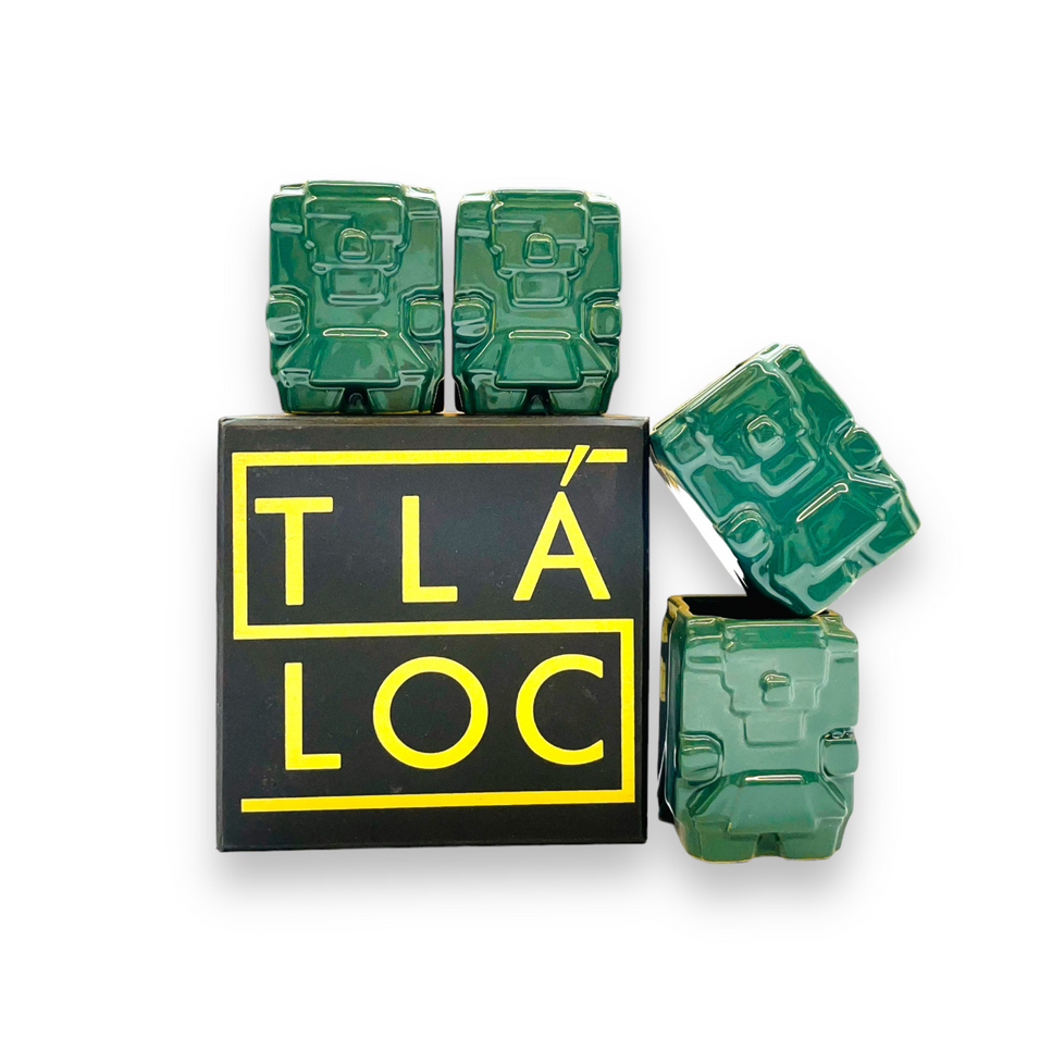 4 vasitos mezcaleros/tequileros hechos a imagen del Dios Tlaloc para brindar contigo por el éxito, prosperidad y abundancia de tus nuevos proyectos.