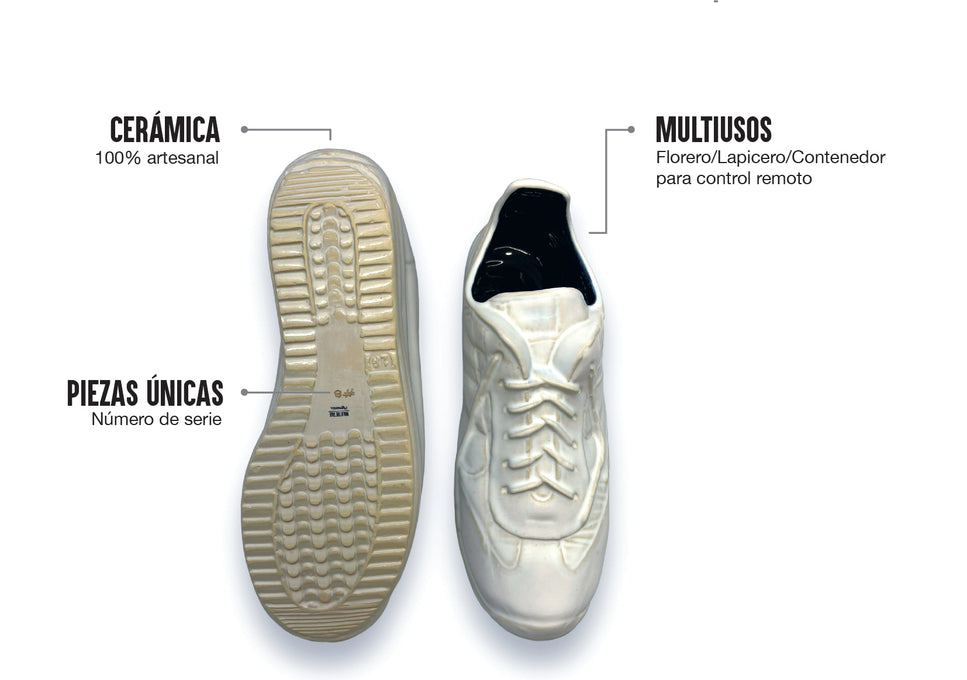 Par de tenis en cerámica, piezas seriadas. Decorativas, contenedores y foreros. Con de serie.